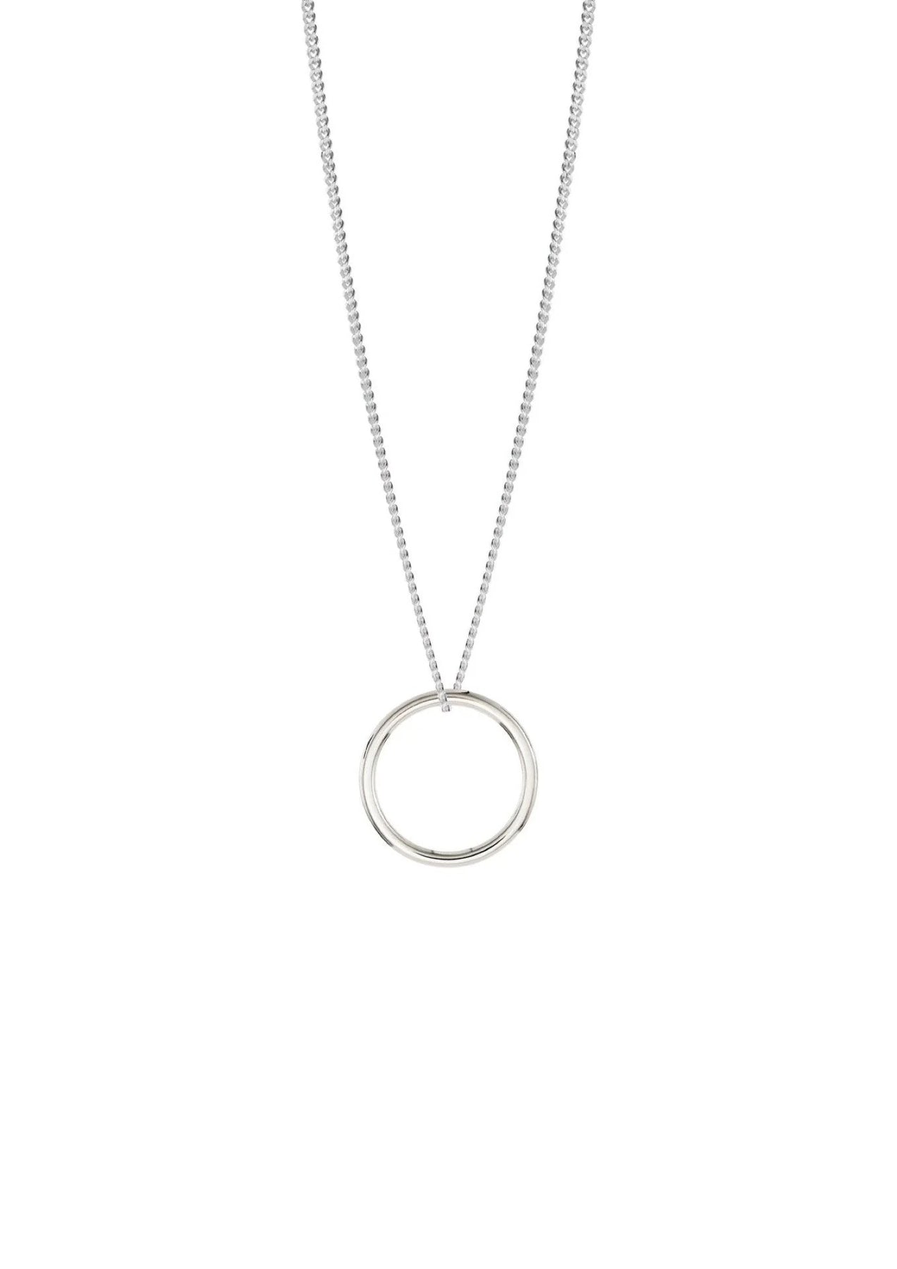 A sterling silver minimalist design with a sleek circle pendant offers effortless style. Wear it on its own or slip off the pendant and transform it into a chic pinky ring.